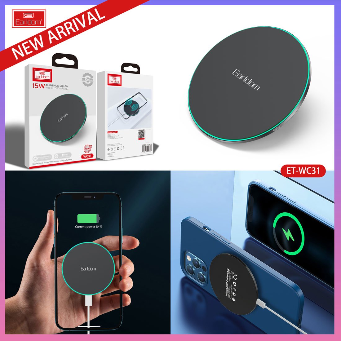 •  Experience hassle-free charging with the Earldom ET-WC31 15W Wireless Charging Pad